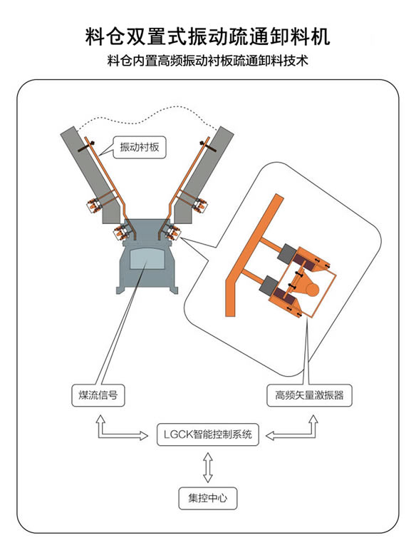 SGZP-[]-[]系列料倉雙置式振動疏通排料機,是我公司與西安煤炭設(shè)計院合作,引進專利喬斯特〔JOST Company〕公司,國際先進的亞共振、振動破拱技術(shù),采用國際前沿的雙相彈性矢量壓縮,動量緩沖高頻振動,區(qū)段振幅同步放大,設(shè)備對稱分置等技術(shù),徹底清除料倉、溜槽,因物料靜置產(chǎn)生結(jié)拱引起的堵塞問題,配合煤位射頻智能監(jiān)測系統(tǒng),精確控制設(shè)備的有效運行,徹底解決各類惡劣工況下料倉、煤倉、溜槽、導(dǎo)料槽、分流槽,落煤管等關(guān)鍵部位,因物料靜置而產(chǎn)生的結(jié)拱堵塞問題,適合各類水份大,黏度高,易結(jié)拱的物料。