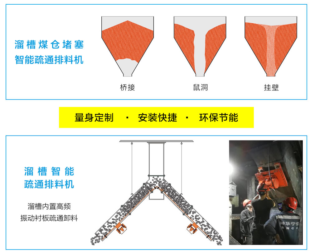煤倉內(nèi)置振動(dòng)襯板破拱/清堵/疏通/排料設(shè)備